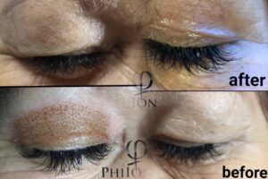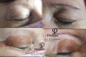 Po zákroku je klientka seznámena s následnou péčí. Na ošetřeném místě se druhý den po zákroku vytvoří stroupky, které je nutné nechat zahojit. Doba hojení je individuální od 7 do 10 dnů. (nikdy nestrhávat stroupky sama) Po vyloupnutí stroupků zůstane kůže lehce zarůžovělá (nová kůže) a může být citlivá. To se vše vratí do normálu a řádech několika týdnů. Po aplikaci je třeba počítat i s otokem, proto je důležité ledovat první dva dny. Nedělat nic náročného a odpočívat, nepřeklánět se. Vyhýbat se slunečnímu záření a soláriím. Ničím stroupy nemazat a nechat samovolně zahojit. Klientka by měla být při aplikaci zcela zdravá.Před výkonem doporučuji konzultaci osobně, nebo telefonicky. Zákrok se nedoporučuje dělat v létě kvůli sluníčku (vznik pigmentových skvrn).